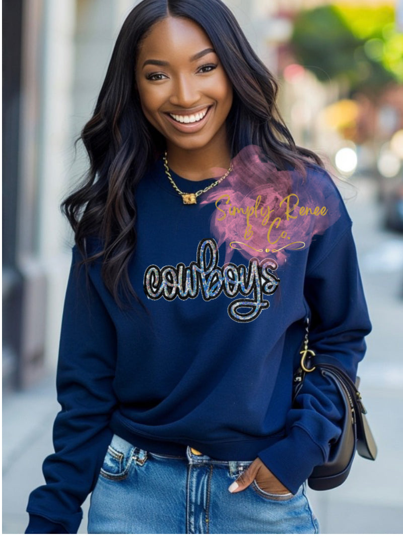 This Cowboys Sequin Patch Sweatshirt is the perfect blend of comfort and glam — designed for the fan who loves fashion just as much as football. Whether you’re cheering from the stands, tailgating with friends, or repping your team in everyday style, this sweatshirt brings the shine to your Cowboys spirit.