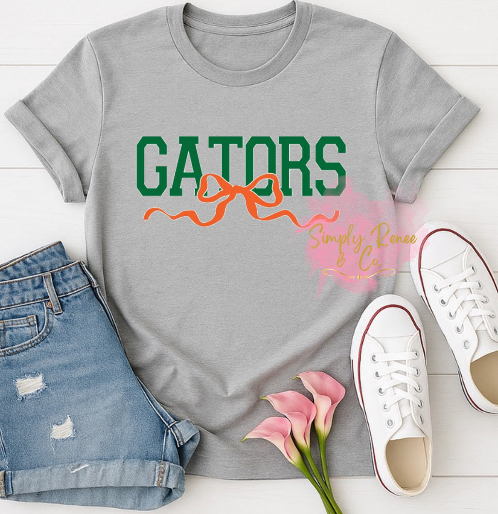 Made from soft, breathable fabric, it keeps you comfortable through long school days, tailgates, and Friday night lights. The bold “GATORS” lettering paired with the playful orange bow makes it a fan favorite for teachers, students, and superfans alike.
